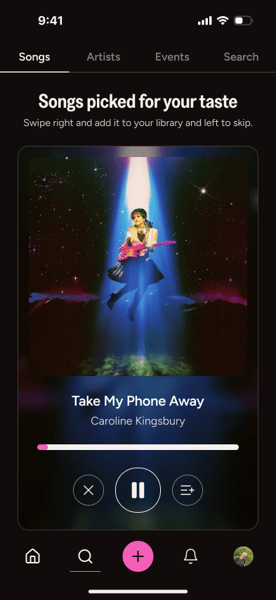 Get recommendations on songs, artists and events based on your taste. We’re reshaping the algorithm to deprioritise already dominant artists, instead spotlighting local and emerging talent.